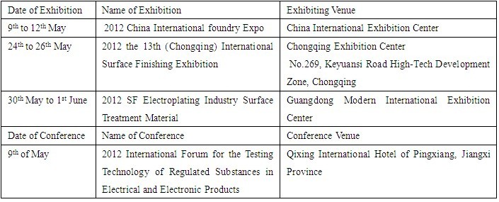 Schedule of Exhibition and Conference for May 2012